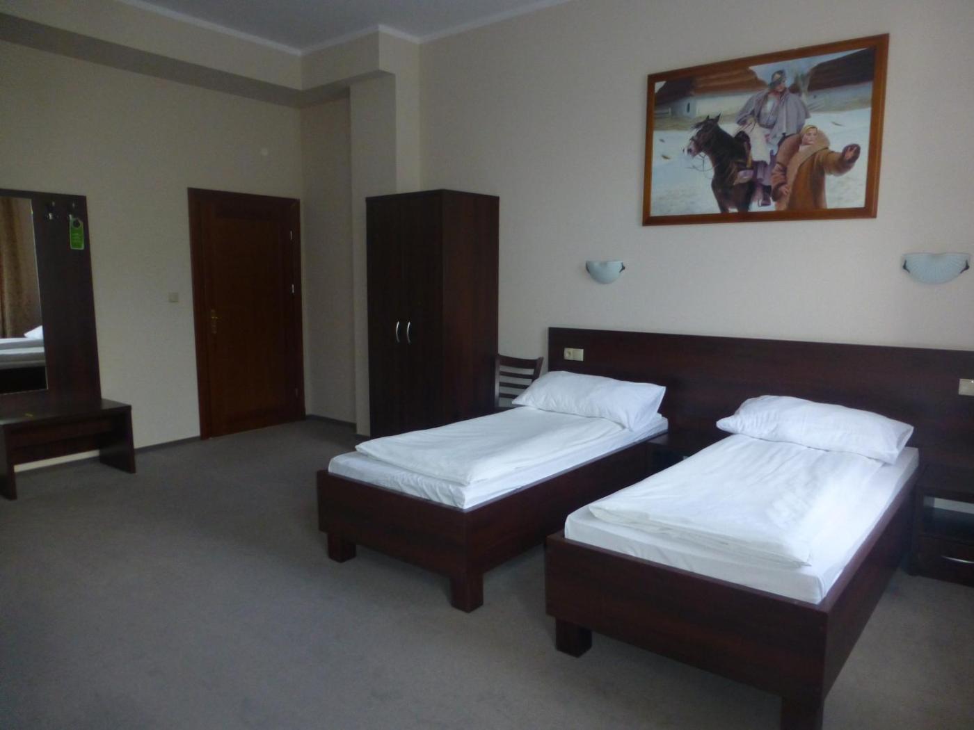 Pokój z 2 łóżkami pojedynczymi. Jest to prosto urządzony pokój z telewizorem oraz łazienką z prysznicem. Pokój z 2 łóżkami pojedynczymi - 2 osobowy. Powierzchnia pokoju ok.: 15 mkw. ;