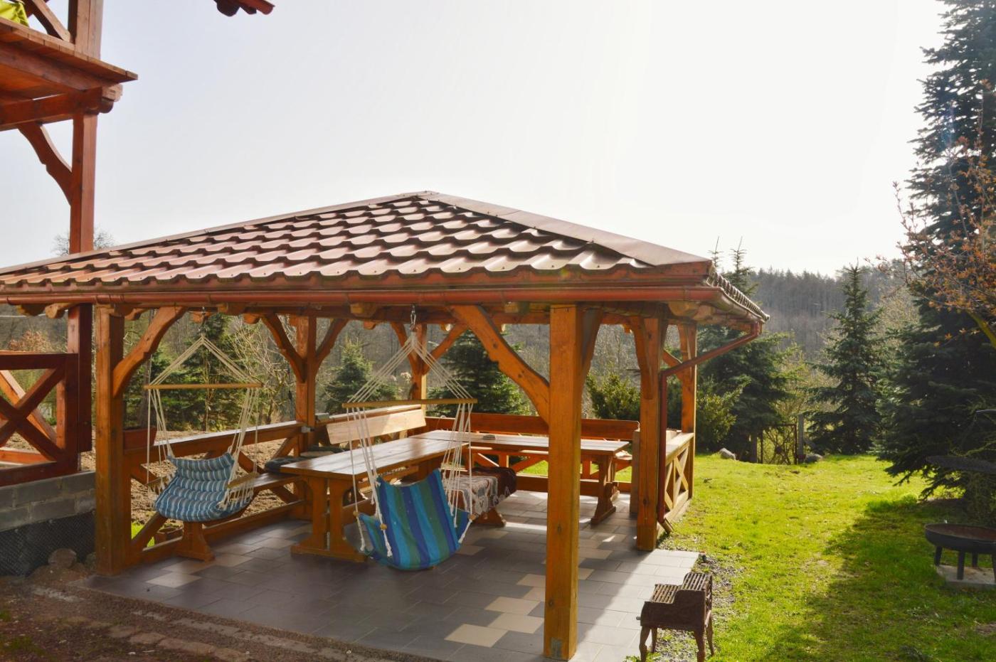 Pokój trzyosobowy z tarasem. This triple rooms special features are the hot tub and the spa bath. Guests will find a stovetop, a refrigerator, kitchenware and an oven in the well-fitted kitchen. The triple room also offers a barbecue. This triple room includes a flat-screen TV with streaming services, a shared bathroom as well as a terrace with garden views. The unit offers 2 beds. Pokój Trzyosobowy - 3 osobowy. Powierzchnia pokoju ok.: 11 mkw.