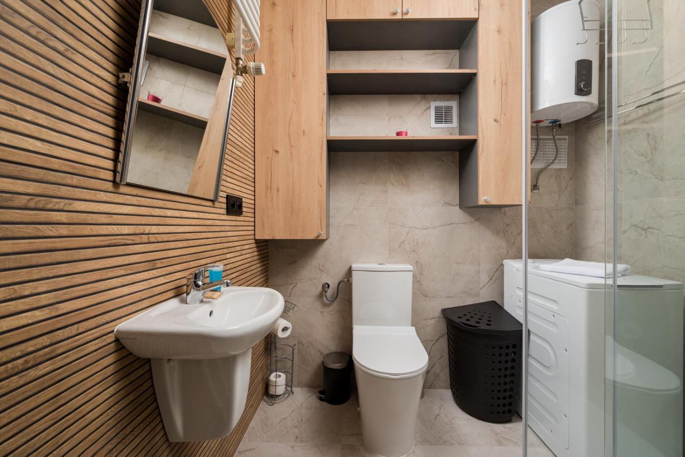 Studio. The studio features a private bathroom, a washing machine, a private entrance, as well as a seating area with a flat-screen TV. Meals can be prepared in the kitchen, which is equipped with a stovetop, a refrigerator, a dishwasher and kitchenware. The studio provides a dining area, a wardrobe, an electric kettle, a sofa, as well as a TV. The unit offers 1 bed. Studio - 2 osobowy. Powierzchnia pokoju ok.: 36 mkw.